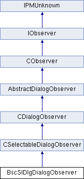 This implementation subclasses CSelectableDialogObserver, not CObserver, to help provide the dialog switching mechanism. Note that each of the methods in this class first call the method in the parent class, CSelectableDialogObserver. (e.g. BscSlDlgDialogObserver::Update calls CSelectableDialogObserver::Update)